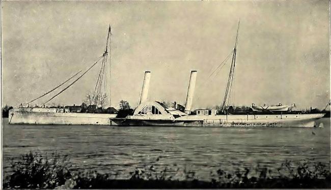 Description: Picture of former confederate runner after being captured by the Federal Navy in the latter part of the US Civil War. You can see that the ship's paddlewheels have been removed. The ship was hit by shells from blockading ships when she was captured. Perhaps the paddlewheels were also damaged and were removed for repair??