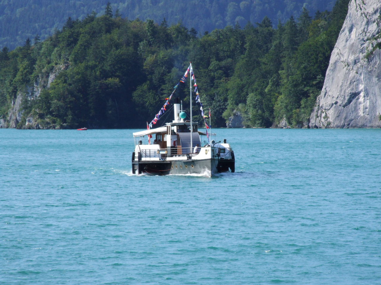 Some pictures and video of the paddler Kaiser Franz Joseph on the Wolfgangsee, Austria. Formerly a paddle steamer the vessel has been converted to diesel propulsion. I'm sure purists will throw their hands up in horror but externally the mode of propulsion isn't apparent. At least it is sailing.