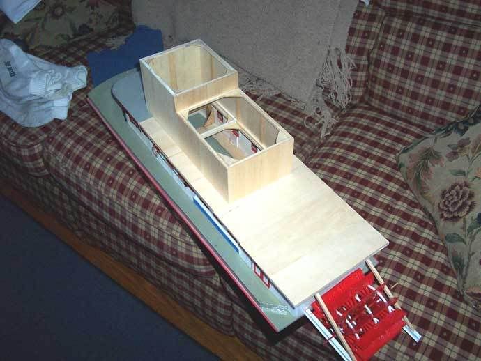 I have pretty much finished the 2nd deck and cabin. Some fit and finish, painting, detail and other work remains but here are some pics of "the Roof" coming together! Honestly guys and gals, this project is turning out better than I had ever envisioned. Next I am contemplating the "Princess Margy" but that comes later-- as in several months. Google it if you want. Super great paddler with a split wheel, jacuzzi, and hydrostatic drive! Great lines and intricate wrought iron trim- stuff- whatever the hell you call it. Only thing is I can't just go down the street and take photos and measurements in the middle of the night. We'll see where that one goes.