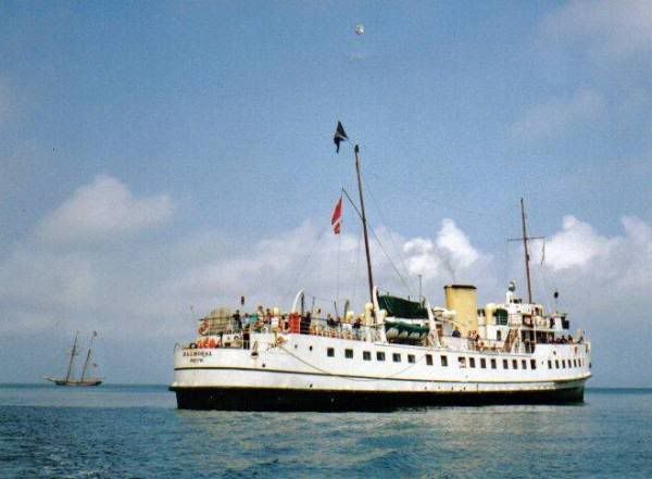 The Balmoral Is painted in the colours of P&A CAMPBELL'S WHITE FUNNEL FLEET, of Bristol.Who once owned her and she is based in Bristol. R.G.Y.
