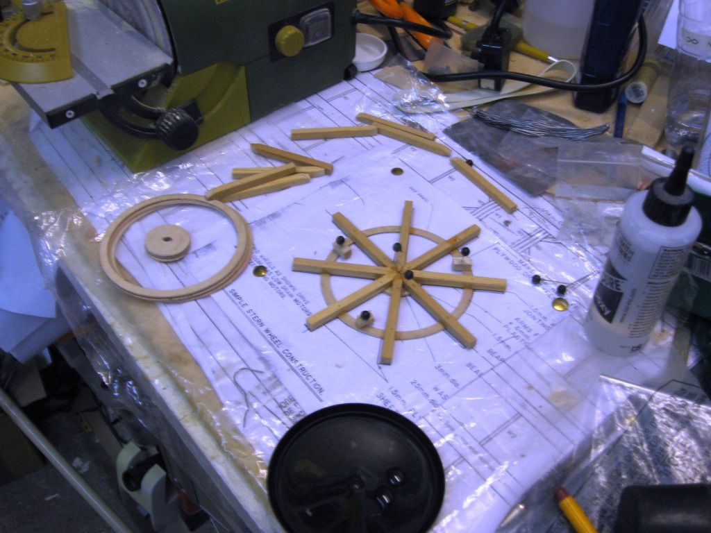 A bit more progess on the paddles. I couldn't find any 25mm dowel for the paddle centres, but I found that a cotton reel would do the job. I have simplified the construction a little and I don't think it will make any difference.