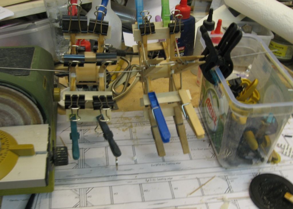 Got some time in the workshop today, I glued the paddles on using slower setting epoxy. Fortunately I have enough clamps.